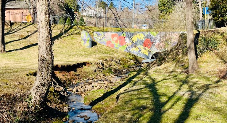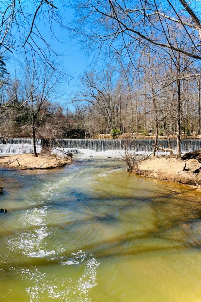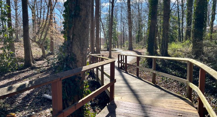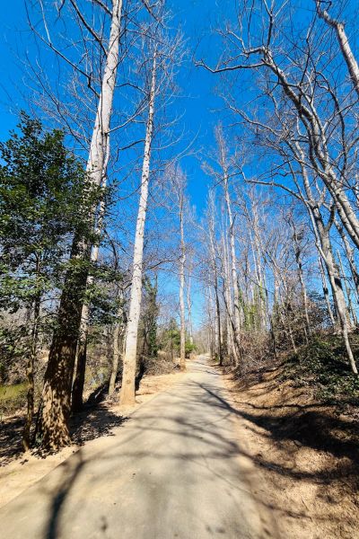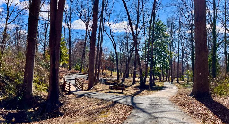 From the amphitheater, you can follow the path down the hill to cross over Spartanburg Road and hop on the Lyman Rail Trail. This paved trail runs just a little under half a mile one-way, and it is entirely level as it follows alongside an old railroad. Cyclists and strollers are welcome, and the trail concludes at Lawrence Street.