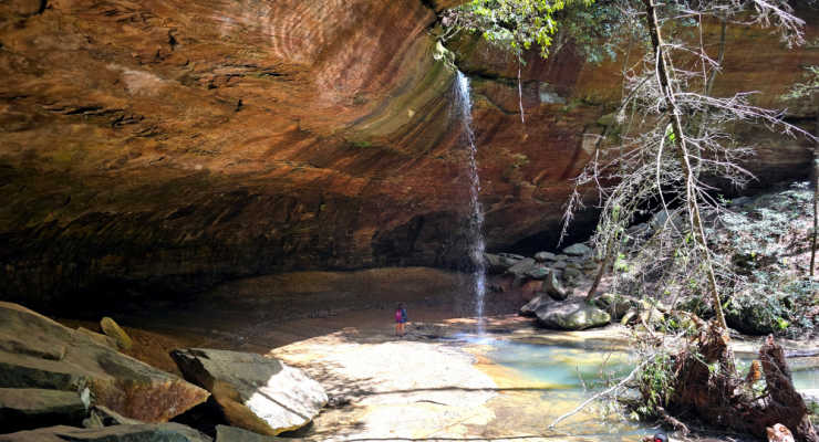 While I have seen my share of beautiful waterfalls, this waterfall is pretty close to the top of my list of the most amazing waterfalls I’ve seen. You can walk behind this waterfall as it pours over the ledge of a huge cave. When the water is higher, you can definitely swim but the water is quite chilly. It’s a must-do on your trip to the Red River Gorge and only a 3.1 mile hike that follows the creek to the waterfall.