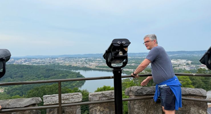After the cave, we climbed the Lookout Mountain Tower, and it was an amazing view. You can see the Tennessee River, Chattanooga, and the Cumberland Plateau. It’s the perfect spot for a family photo after the cave tour.